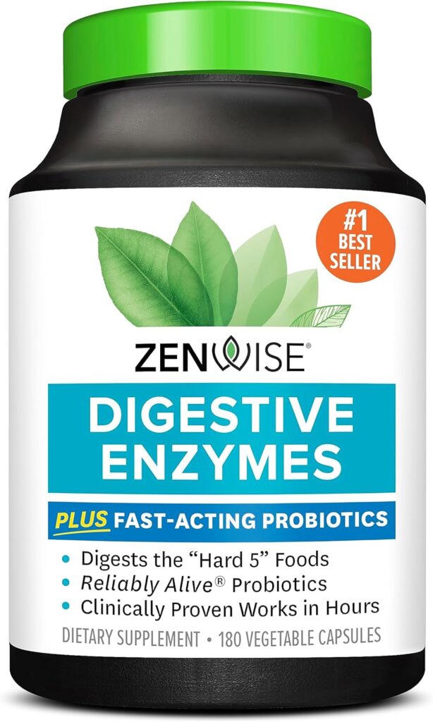 2️⃣ Zenwise No Bloat Digestive Enzymes with Probiotics + Prebiotics
